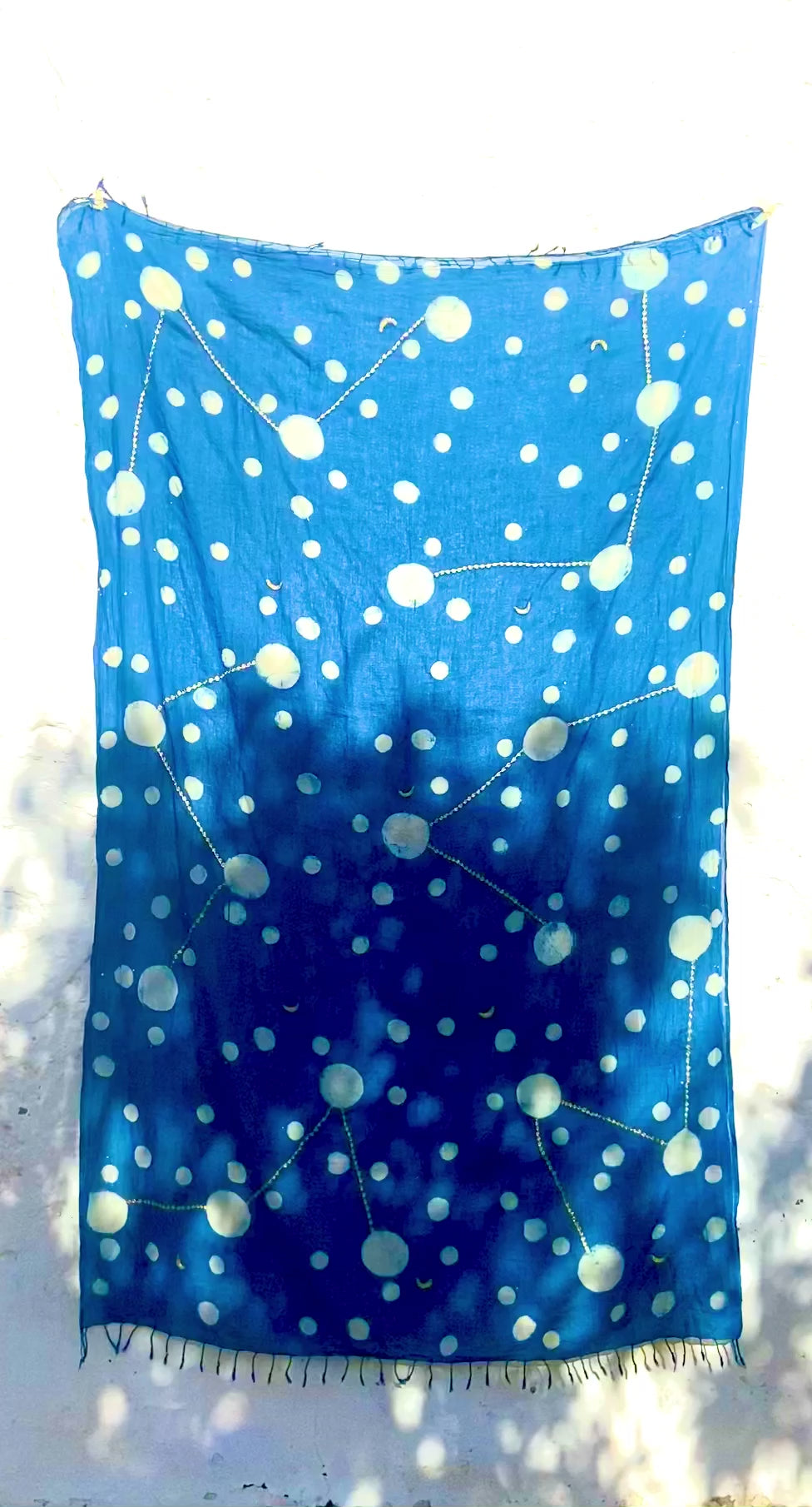Constellation block printed Natural indigo/blue constellation turban/ pareo / sarong.