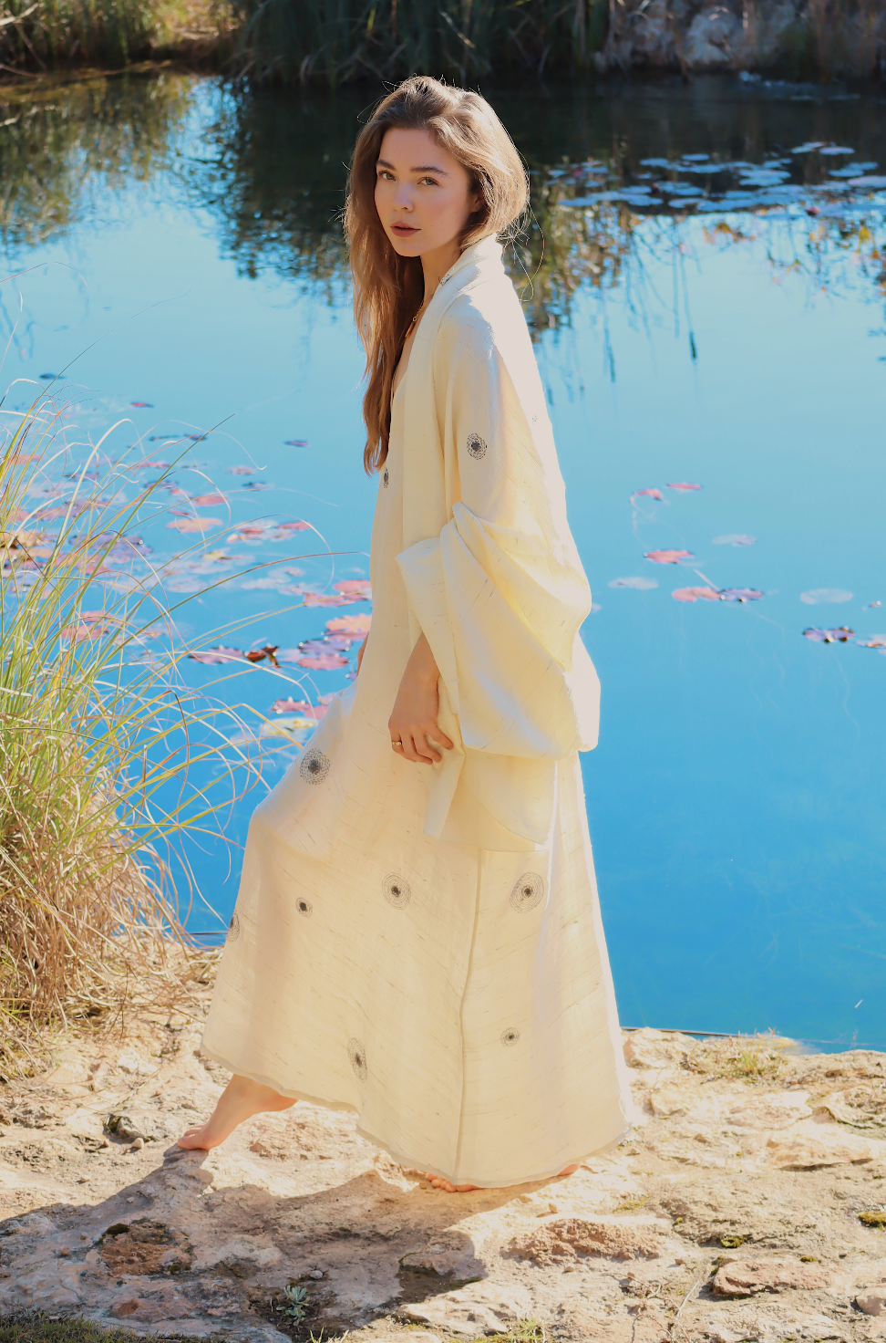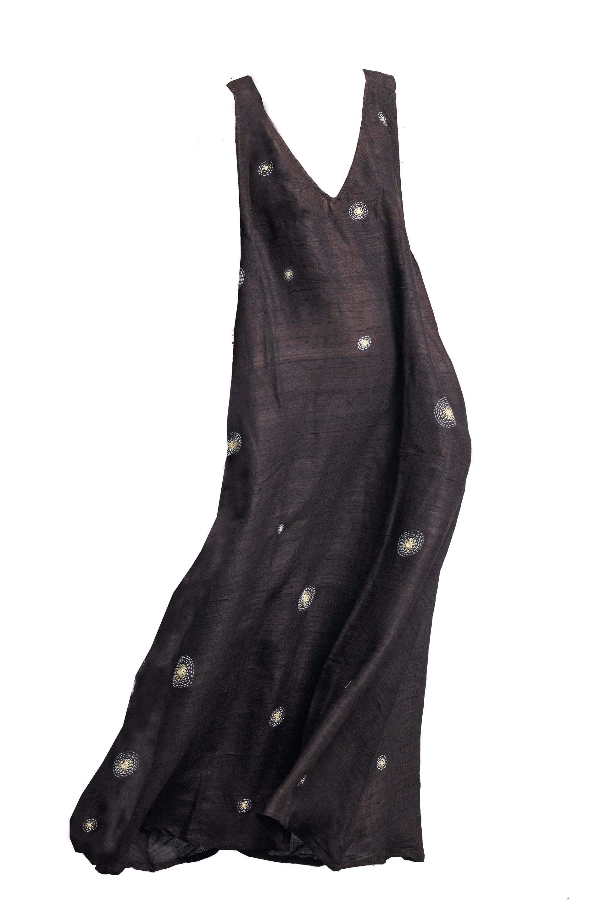 Raw Silk Constellation dress, hand spun and woven.