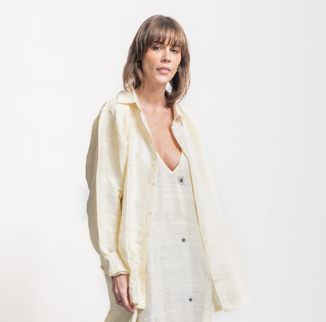 Dupioni raw silk maxi shirt, hand spun and woven.