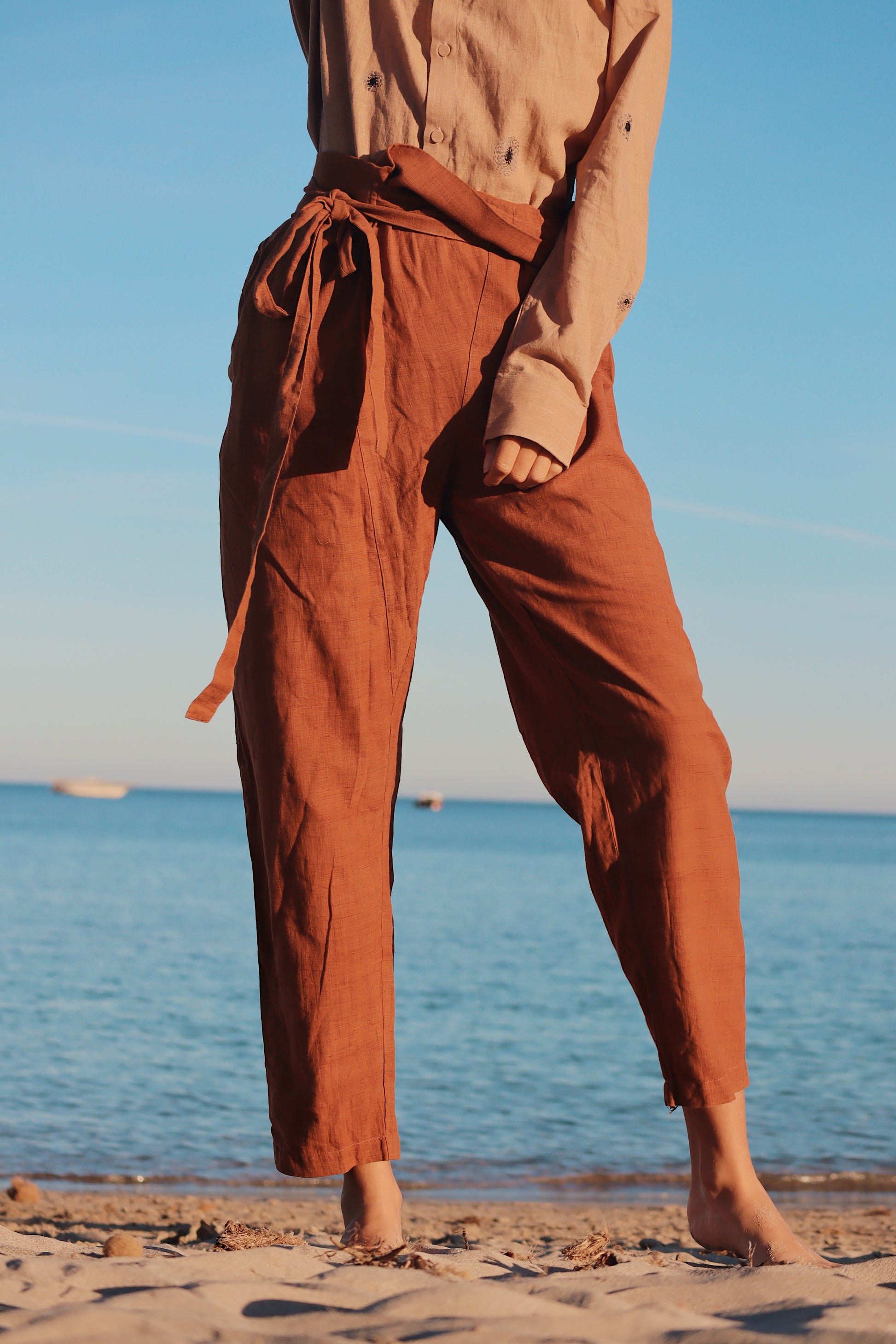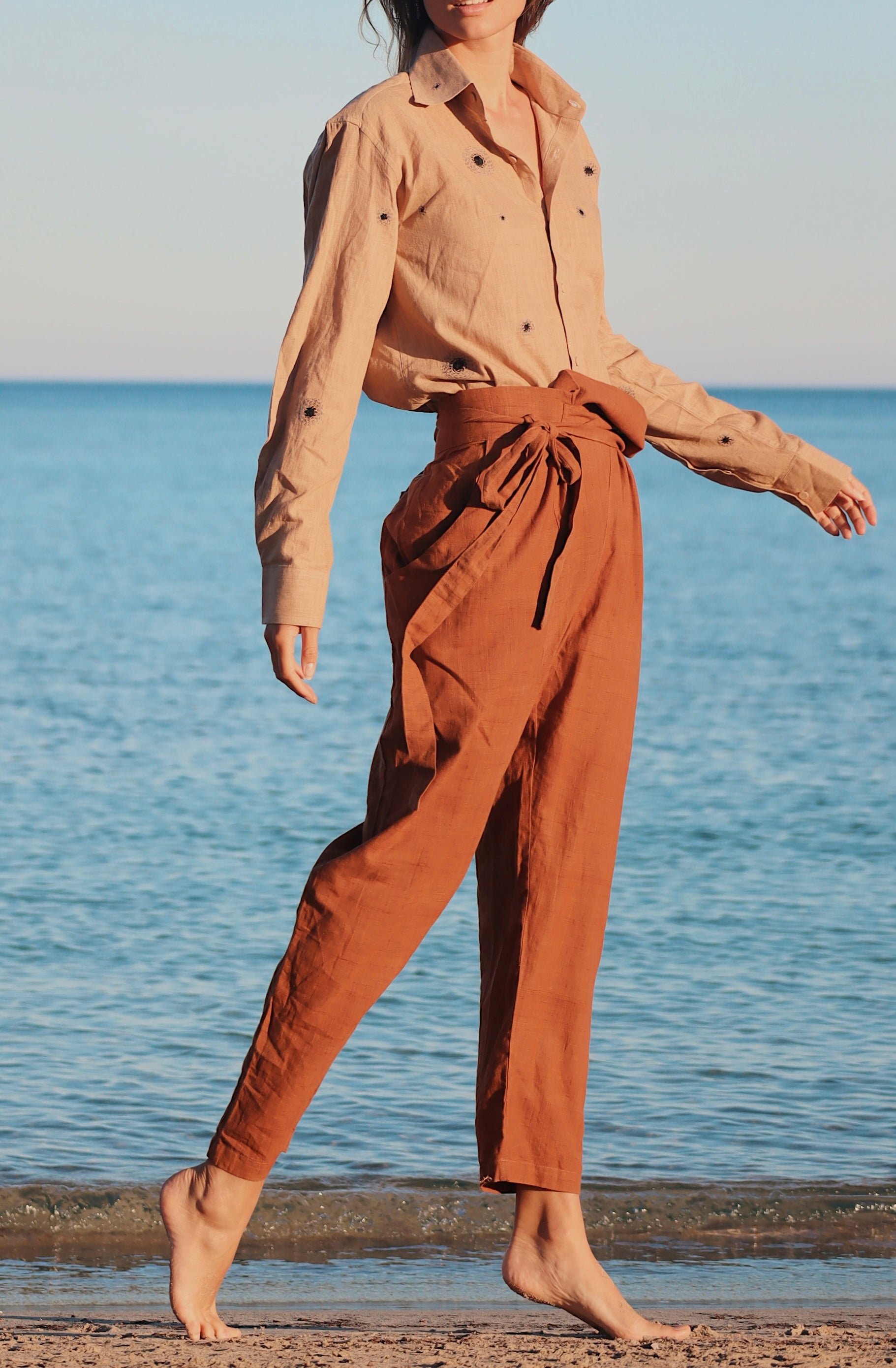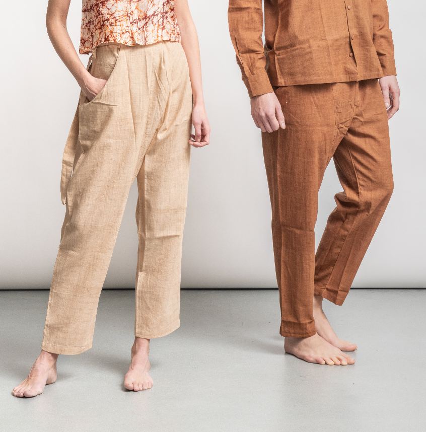 Wrap trousers- unisex - made in organic cotton threads dyed with natural colours.